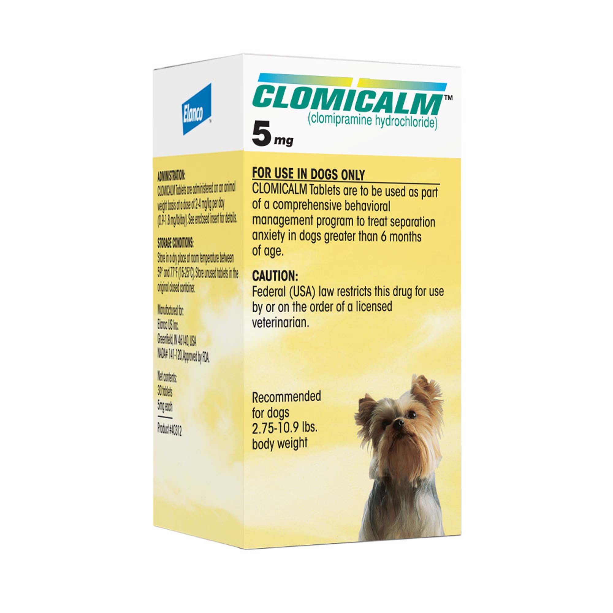 Кломикалм 5 мг (Elanco Clomicalm 5 mg) — ветеринарный препарат европейского качества, предназначенный для коррекции поведенческих нарушений у собак. Его основное достоинство — доказанная эффективность в сочетании с поведенческой терапией при расстройствах, связанных с тревогой и нарушениями поведения (в частности, при синдроме разлуки). Препарат может применяться у других видов животных только после индивидуальной консультации с ветеринарным врачом и при наличии соответствующих показаний.